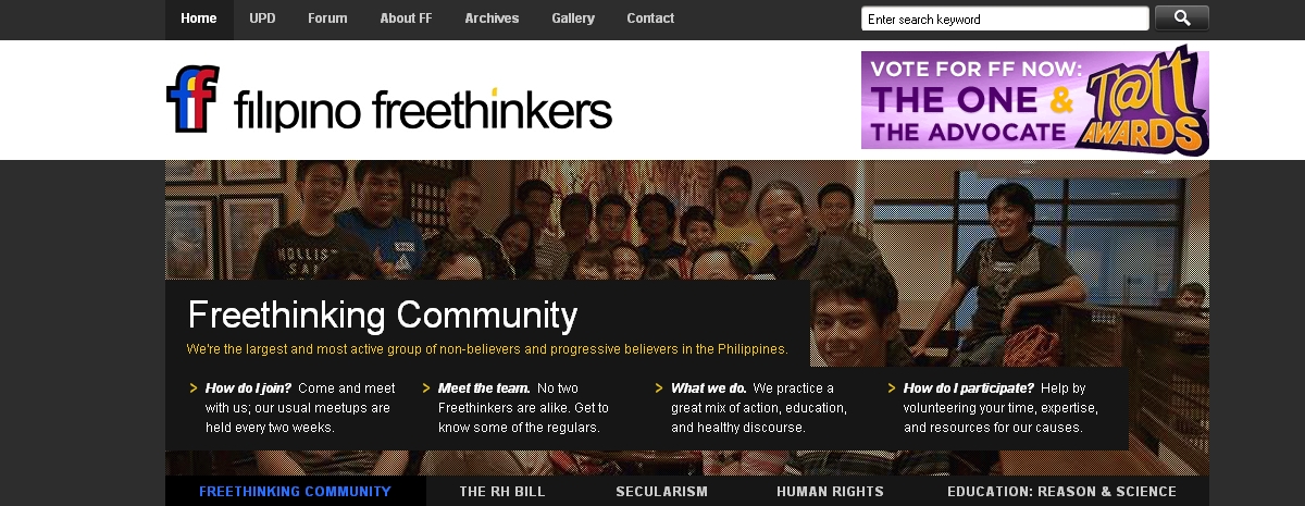 Ultimately, this revamp is our way of ushering in a great new period for the Filipino Freethinkers. So much has happened in the span of two years, and we know that things can only get better from here. The ongoing Globe Tatt Awards is certainly proof of this, and we can’t thank you guys enough for your support. (For those who haven’t voted yet, SHAME! Vote for us under “The Advocate” and “The One” categories here.)