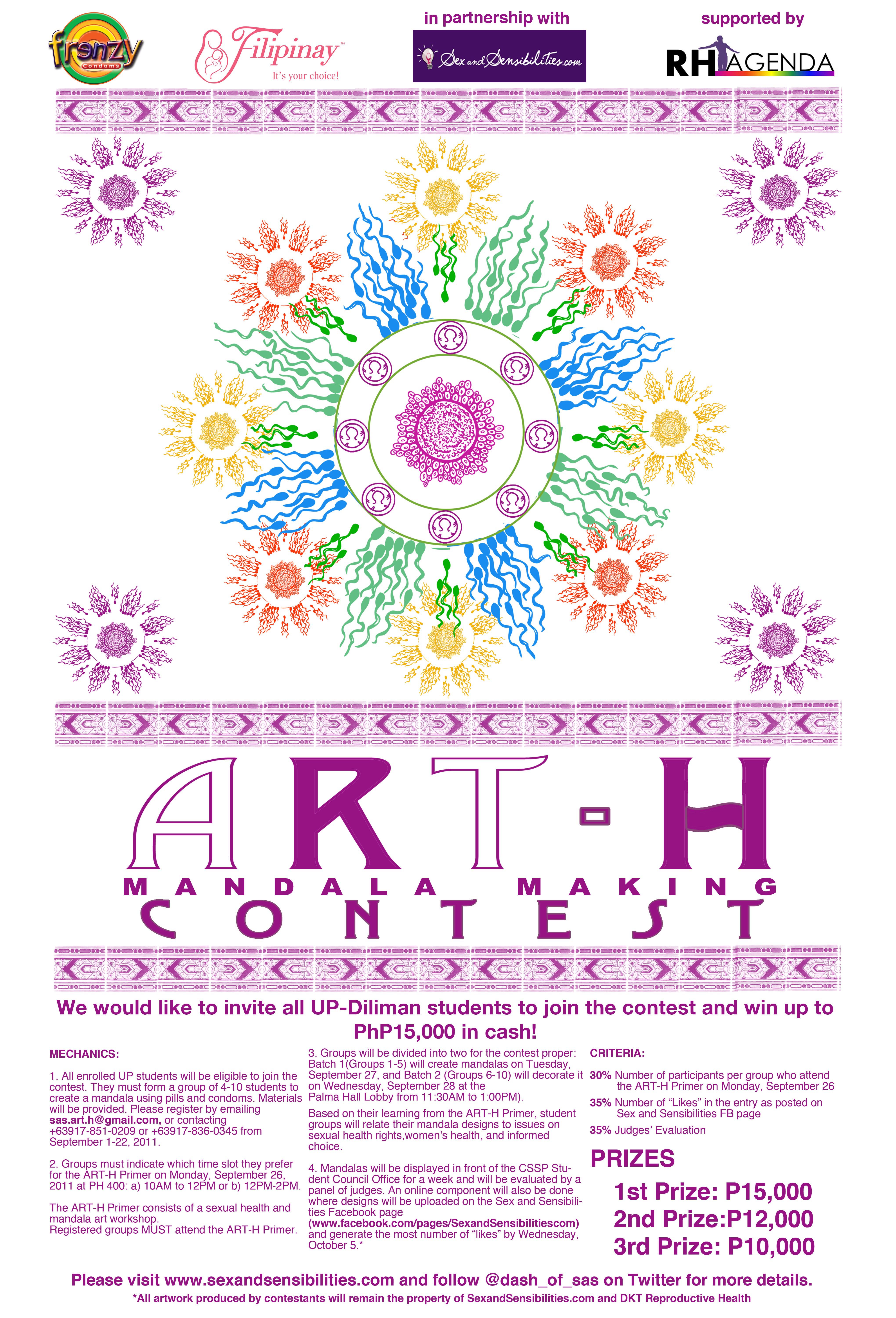 DKT Reproductive Health and Filipinay, in partnership with Sex and Sensibilities, are hosting the ART-H Mandala Making Contest this Monday, October 3, from 11:30 AM to 1 PM at the Palma Hall Lobby in UP Diliman. This contest is open to all UP Diliman students.