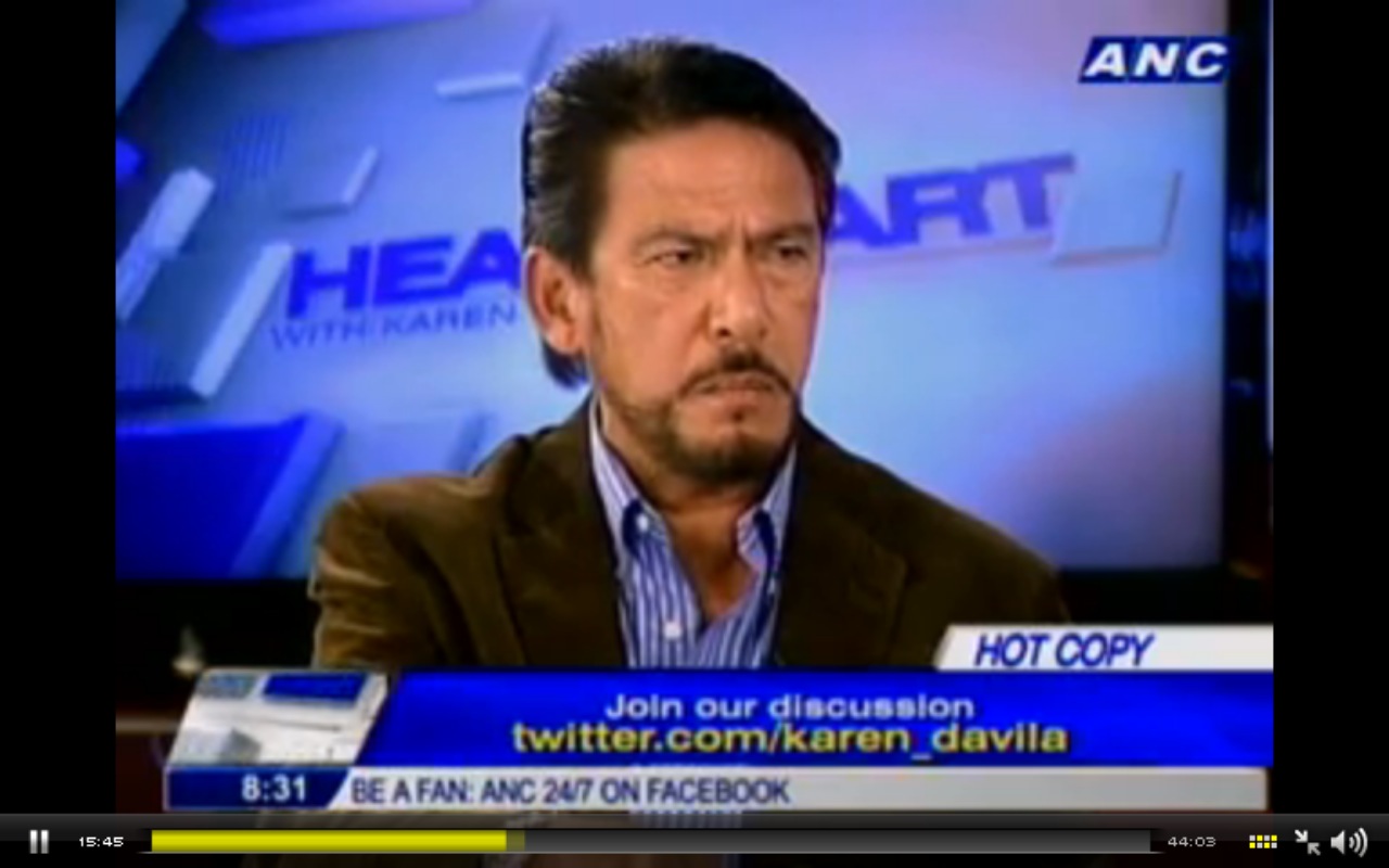 Senator Sotto appears on Headstart on the ABS-CBN News Channel with Karen Davila. He states that he opposes the RH Bill because, if it is made into law, it removes the freedom of choice from mayors and governors for denying their constituents access to contraceptives, should they choose to. He warns, “Do not remove their freedom of choice.”