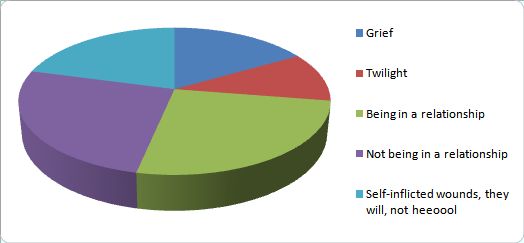 The nanobots were also able to determine the exact reasons for sudden surges in emotion. The following pie chart illustrates how strongly the five most common reasons affect people: